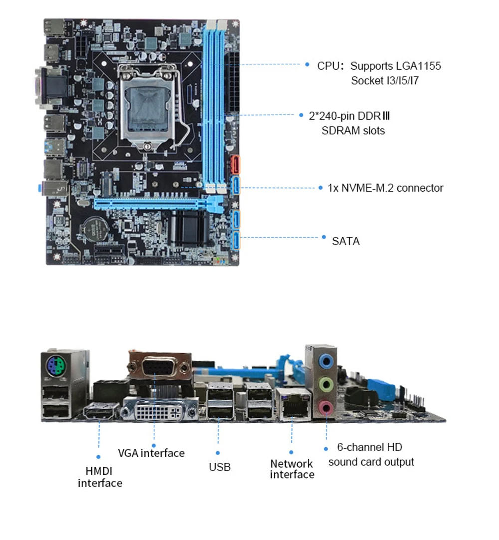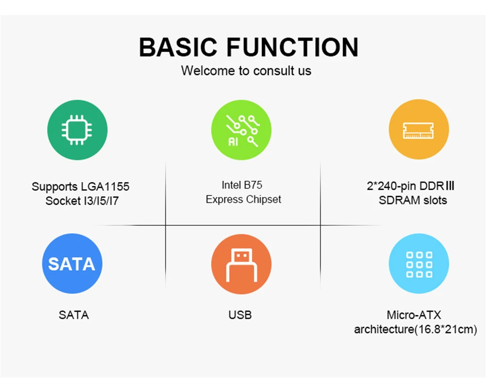 CPUSupports LGA1155 soquete I3/I5/I7 série CPU